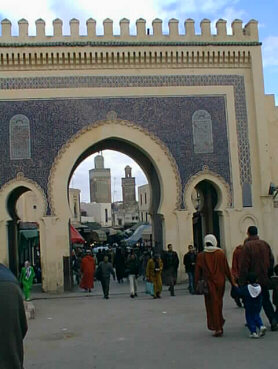 So, there we were, nestled into our own compartment on the train to Fes, feeling a little insecure about Morocco and Moroccans and aware of the potential for mischief. Shortly after the train began rolling down the track, a very pleasant man came to our compartment and, speaking in perfect English, asked where we were from and where we were going. He told us that we were on a direct train to Fes, and warned that if someone came to us and, speaking in English or French, told us that we needed to change trains, not to believe them. "Don't get off this train," he cautioned. In response to my inquiry, he said he was with the railroad. Ah, the comfort of a friendly voice and sound direction. Which didn't last long; the drama had begun. Presently a rather sinister looking man came to our compartment, poked his head through the door and, in English, asked if our cabin were full, to which we said yes ("full" being liberally construed). He then asked us where we were from and where we were going, and then told us that we would have to change trains in a place called Sidi Kacem. Being warned of his devise, Randy replied "I don't think so," and the man left. We felt quite smug in bouncing off a suspected hustler. As if to confirm it all, an announcement rumbling from the scratchy loudspeaker told us that we were indeed on the train from Tangier to Fes (well, so we guessed -- but we accepted it as a positive sign). So far, so good. We chugged through a not-very-colorful landscape where farmers, dressed in their winter jabalas (wool tunics with pointy hoods, kind of like "Obi-Wan" in Star Wars) bounced along on donkeys through the plastic-bag/trash-littered country, while sheep and their herders wandered amongst the flinty earth. After a little while a man in uniform stopped and asked to see our tickets. He spoke mostly French and Arabic, but managed a little English. Accompanying him were two men who, for all we could figure, looked like his shisha-smoking buddies. Anyway, he punched our tickets and told us that we would have to change trains in Sidi Kacem. Hmmmm, a quandary was forming. Whom do we believe: (1) the pleasant man who warned us of a potential plot ("don't change trains"); (2) the sinister man who reeked of being a hustler ("change trains"); or (3) the uniformed-man-with-shisha-buddies ("change trains")? What would you do? We worked ourselves up into a froth, let me tell you. We checked our maps, we double-checked our tickets, and we wondered about motivations and played out various schemes and scenarios, none of which helped in deciding what to do. Over the next hour or so, the train continued through several small towns where it made momentary stops along the tracks to pick up more and more people and their belongings, usually a conglomerate of boxes, baskets and bags tied with string or whatever else was handy. Most locals preferred to move along to other compartments when they saw us, but the time came when a Moroccan man (Man No. 4), a country farmer, perhaps, was left with no choice but to sit with us. He loaded his many packages in and initially chose to stand outside the compartment for a while, looking out the window and pretending to be comfortable standing. Shy, I guess. Eventually we coaxed him in to have a seat. Man No. 3 (the uniformed train officer) poked his head in again to check tickets, and reiterated (this time in English), that at the next stop we must get off the train and take another to Fes. Oh, dear. Fear and confusion surfaced again. Candi votes to stay on the train; Randy said maybe we should stay; I said I don't know, let's talk to this man in the cabin. This is what makes being a traveler so enticing, I suppose. The train began to slow down as it approached the next stop -- the now infamous Sidi Kacem -- a weighty decision bearing down on us: stay or go? What did we do? The three sophisticated, world-travelling Americans cast their fate into the hands of a shy, non-English-speaking Moroccan farmer. And that, as Robert Frost said, "has made all the difference." Wish I had a picture. After a series of mysterious hand motions and ticket show-and-tell, the train came to a full stop. The farmer motioned us to follow him, and we plodded along with all the other passengers -- three foreigners amidst a pile of Moroccans -- to sit out in the dust and wait for another train, the train to Fes. |
